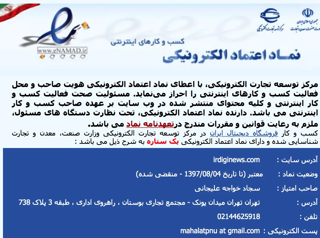 مشخصات اینماد وب سایت http://iranport.website که از اون طریق درگاه ثبت شده :