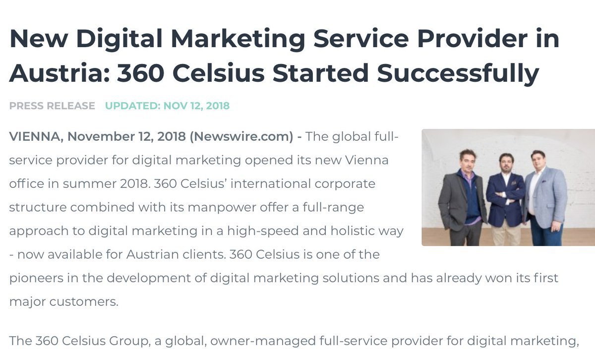 صادقیان جهت توسعه فعالیتهای رسانهای و تبلیغاتی، سالها پیش 360 Celsius GmbH را در وین اتریش ثبت کرد.